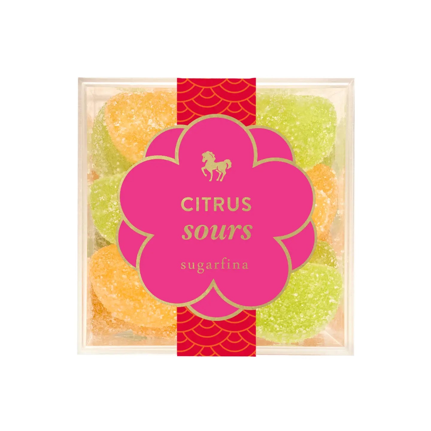 Red candy packaging with "Sassy Strawberry" text. Features a cartoon strawberry blowing bubblegum, wearing sneakers and a cap, holding a skateboard.