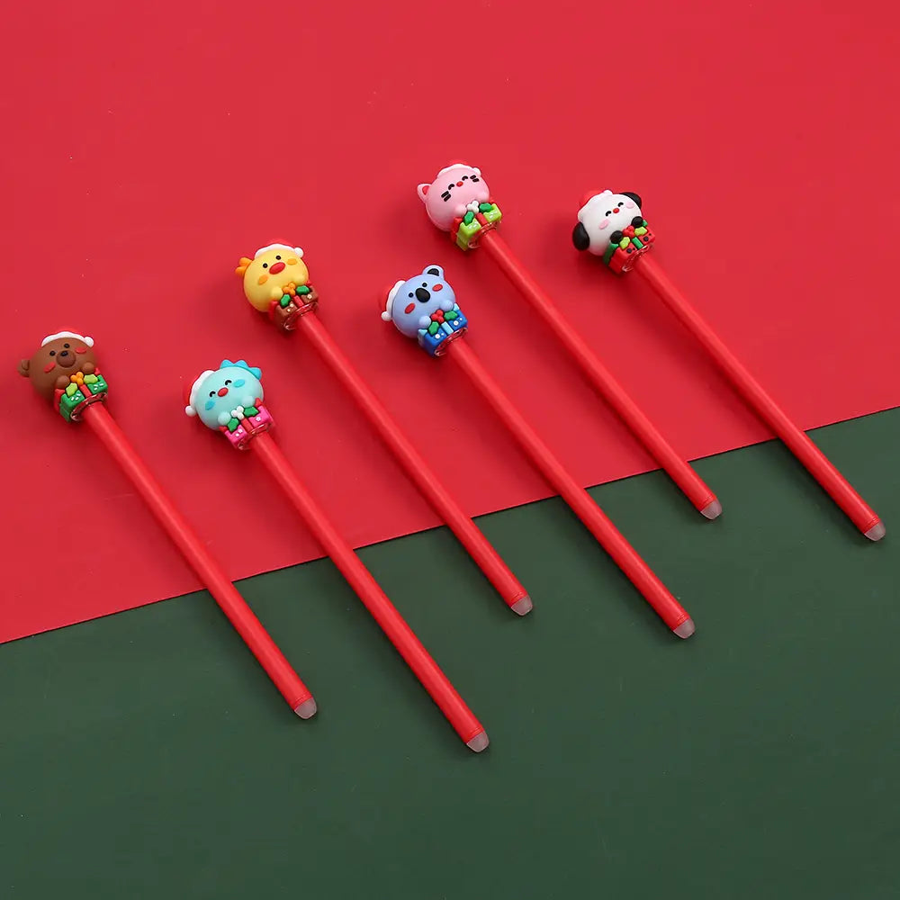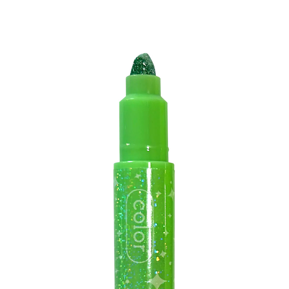 Three green pens with frogs sitting on a lily pad. Green frog, light yellow frog, light green frog.