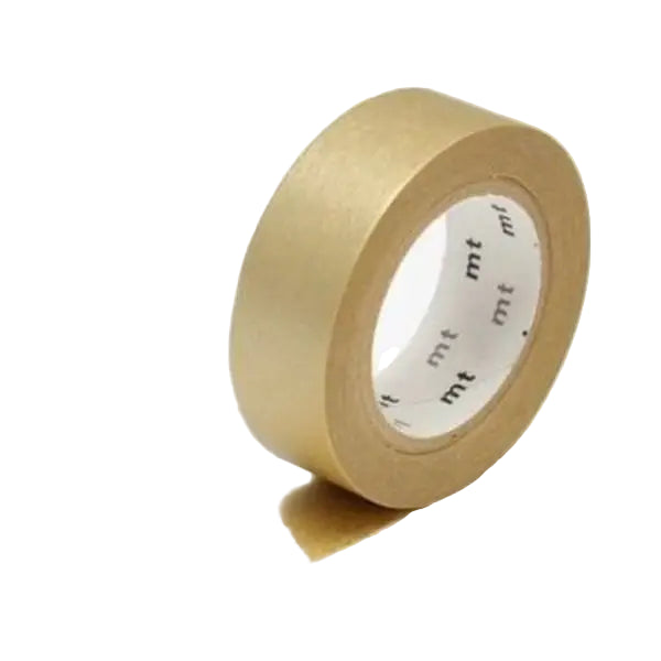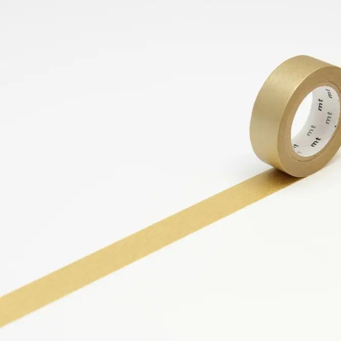 Roll of gold polka dot tape with 'mt' branding on a white background