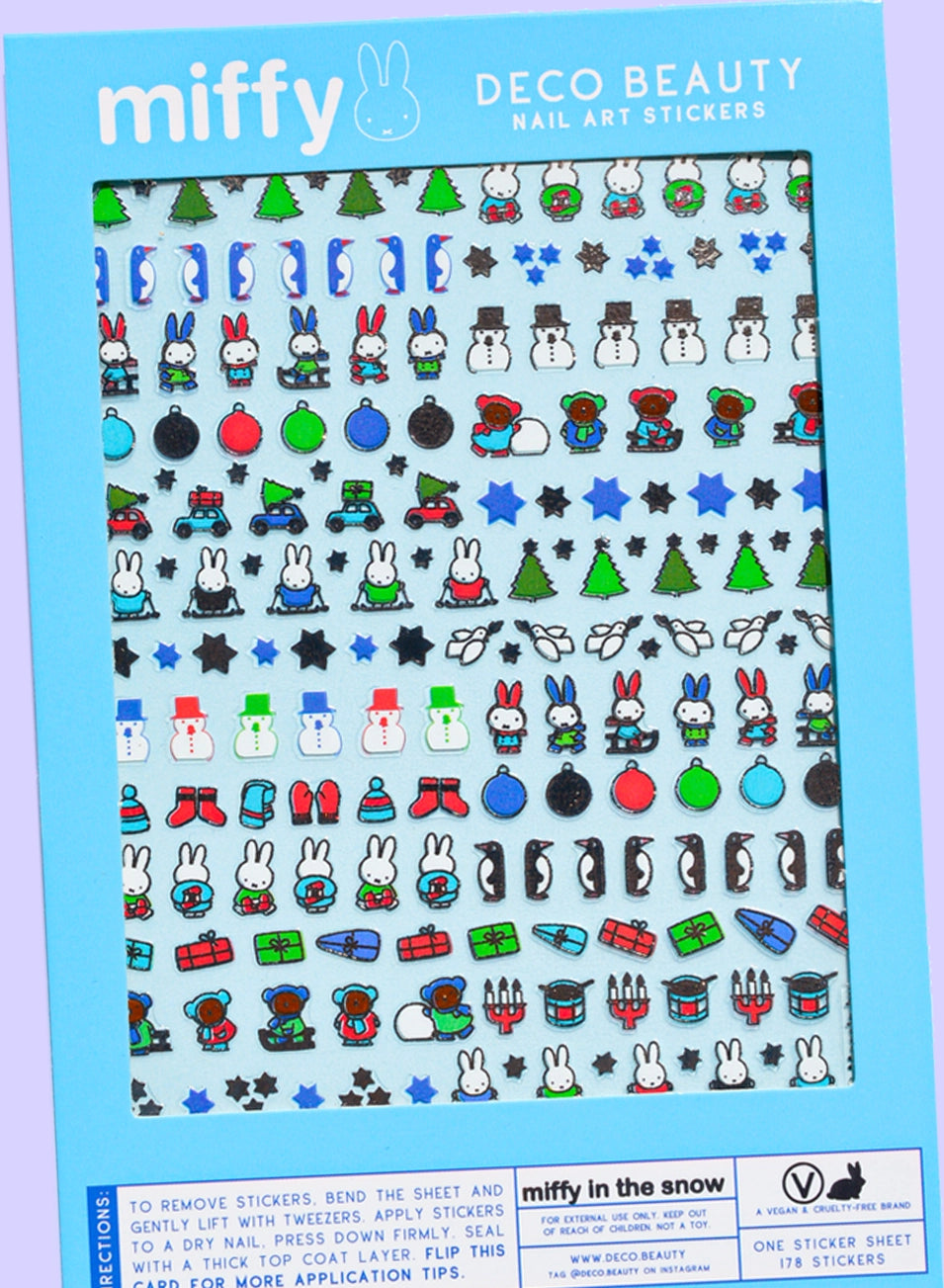 Packaging of miffy Deco Beauty nail art stickers with various designs on a blue background.