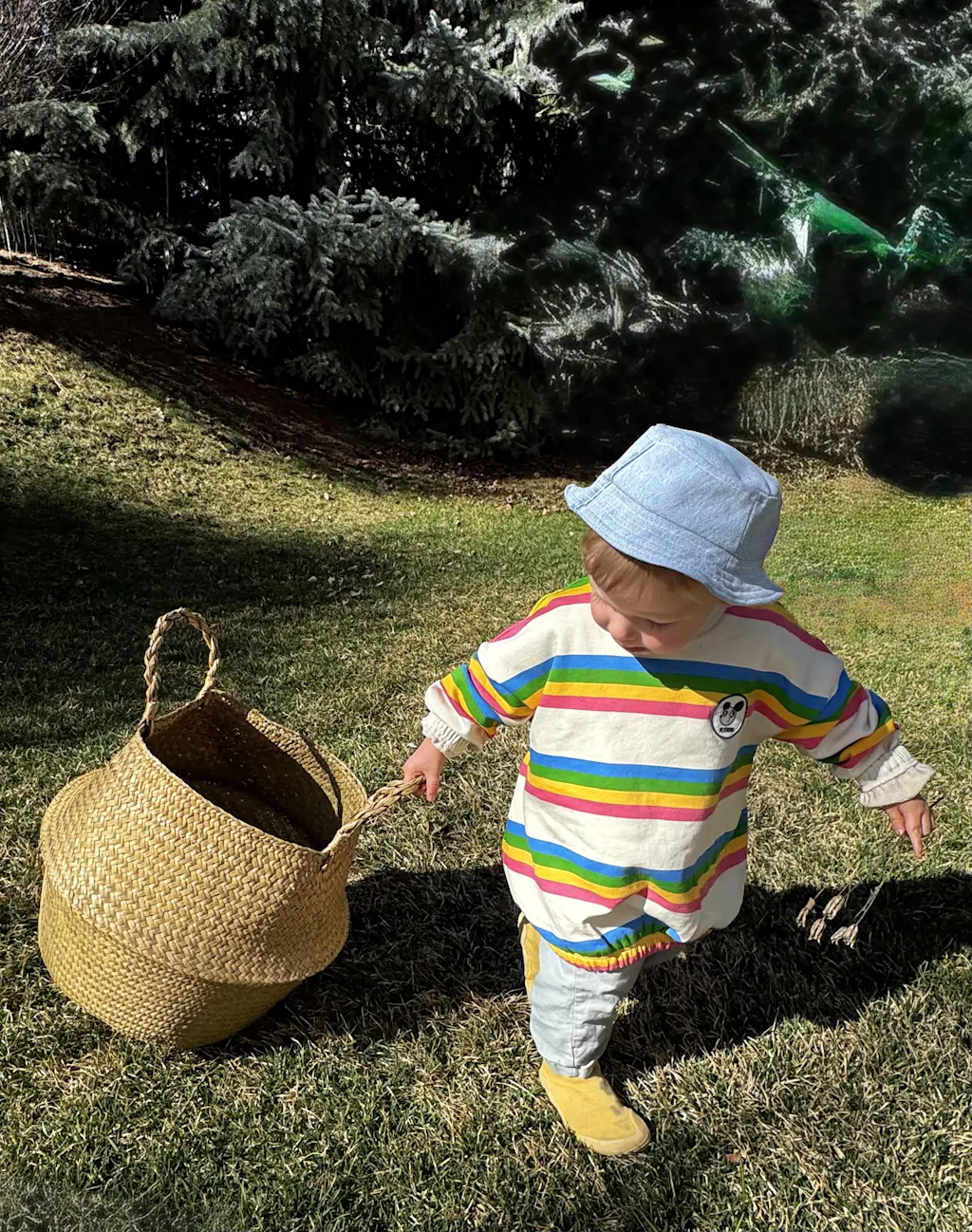 Our go-to layer for spring - perfect for playing in the garden, and the rainbow pattern goes with everything.